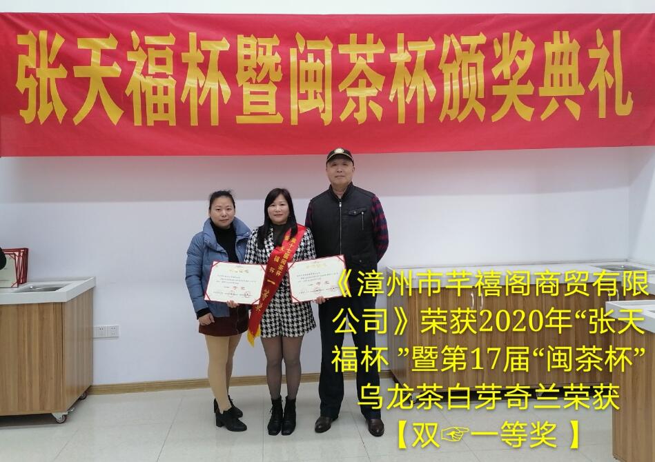 漳州市芊禧阁商贸有限公司荣获2020年“张天福杯”暨第17届“闽茶杯”乌龙茶白芽奇兰荣获【双一等奖】...