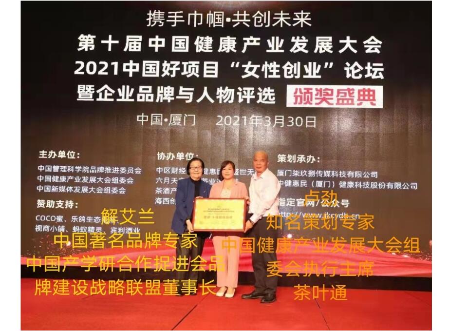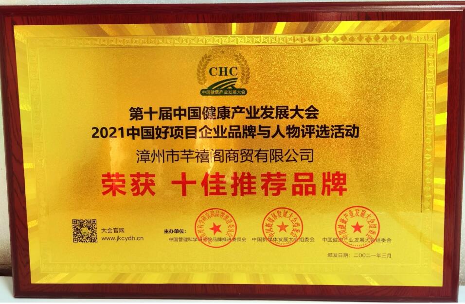 第十届中国健康产业发展大会好项目论坛暨企业品牌与人物评选颁奖盛典,漳州市芊禧阁商贸有限公司 “荣获十佳推荐品牌 ”
